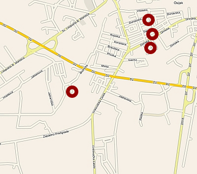 Biračko mjesto broj: 23 - Vijenac K. Sutjeske 2 Biračko mjesto broj: 24 - Dječji vrtić Pčelica, Gacka 1 a Biračko mjesto broj: 25 - Dom za starije i nemoćne osobe, Drinska 10 Biračko mjesto broj: 26 - Ulica Svetog Marka 4